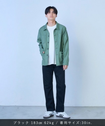 中肉厚でしっかりした着心地のブラックデニム生地で