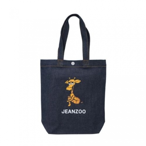 JEANZOOオリジナルキャラクターのプリントが施されたトートバッグのデニム生地タイプ。