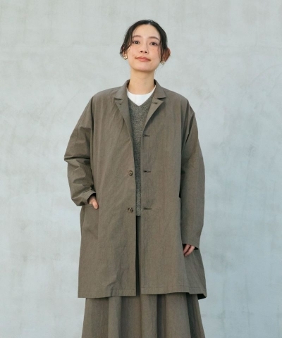 襟を立てても、寝かせても着用できるオーバーサイズコート。