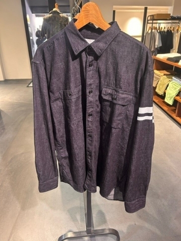 三本針の巻き縫い仕様の本格的なワークシャツでありながら、洗練された上品さを兼ね備えた1着です。衿はコンパクトに、縫製を細かく仕上げ、洗練された印象を与えます。左側は個性的なシガレットポケット仕様。