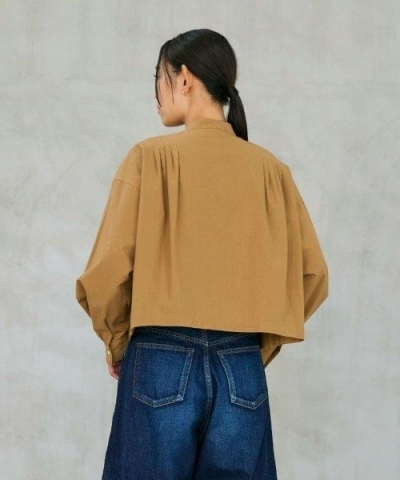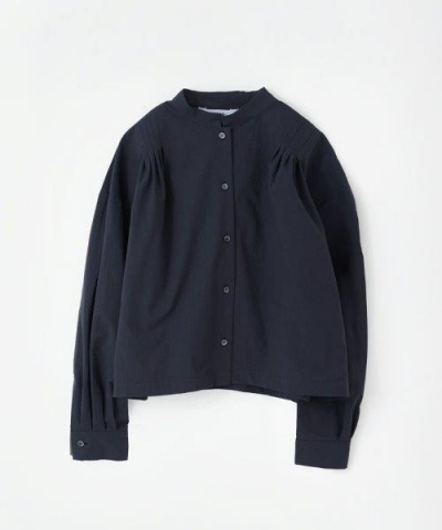肩のプリーツや袖のタックが立体感を生む、個性のあるデザインに仕上げたシャツ。