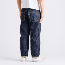 製織には、国産デニム織機の原点ともいえる「豊田力織機」を使用。極限まで弱テンションで織ることで生まれる独特のザラ感は、現行機では再現できない特別な質感です。仕上げもまた、生地本来の魅力を活かすために未防縮・ねじれ防止加工・毛焼きを施さず、キバタの状態からワンウォッシュを実施。綿そのものの風合いを存分に楽しめる一本に仕上がっています。