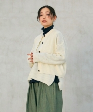 コンパクトな着丈とルーズなシルエットのバランスが愛らしいカーディガン。