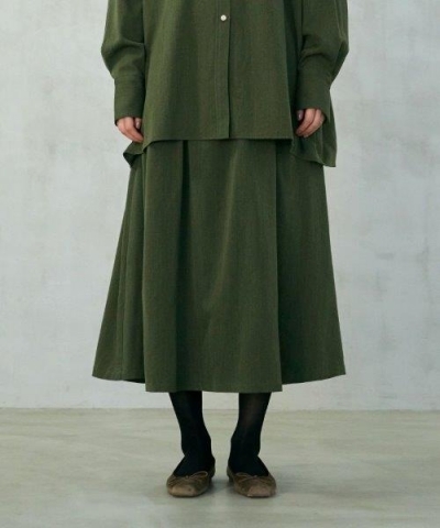 深めに入れたタックが自然な広がりを生み、歩くたびに軽やかな揺れを楽しめます。