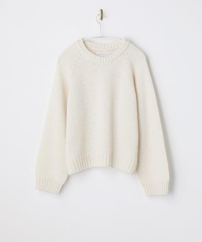 ホールガーメント仕様(一着丸ごと立体的に編み上げる、縫い目のない編み方)で継ぎ目によるごわつきがない、ソフトで軽くふわふわした着心地が特徴です。