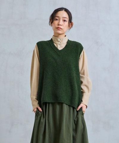 後ろ身頃の長さがあるので、レイヤードしたときに後ろ姿にもさりげない存在感を見せてくれます。