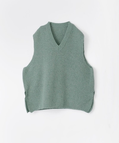 目の粗いブークレニットで、素材の凸凹感やメランジの表情を楽しめるニット。