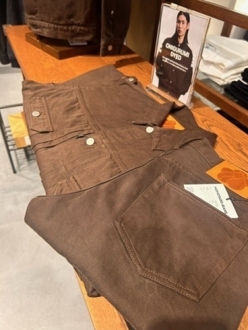 日本に古くから自生するオニグルミの殻や外皮から抽出した天然染料を用い、深みのあるオリジナルのブラウンに染め上げた15ozのデニム。