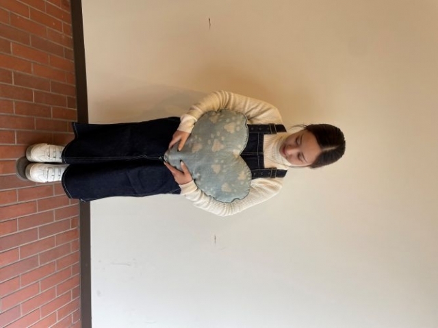 ハート形のクッション♡ デニムのカバーなのでとても頑丈です!