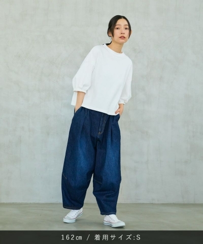ヒップ回りを大きくとり、裾に向かってテーパードがかかったボリュームのあるワイドシルエット。