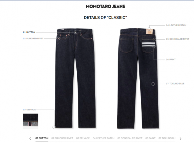 桃太郎こだわりの二本線のジーンズ。