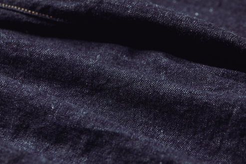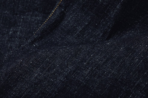 経糸には、コシの強さと力強い色落ちに定評のある米国産原綿のテキサス綿、緯糸には、柔らかさと強さをバランスよく兼ね備えたジンバブエ綿を使用。