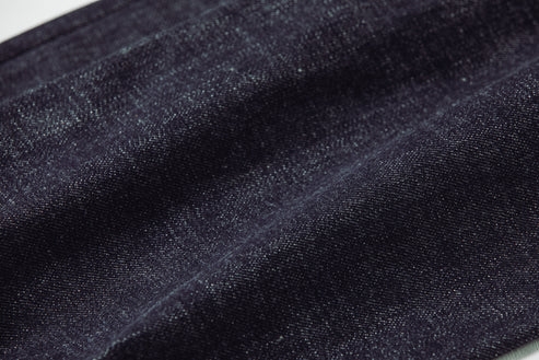 色味は、染色時間を長く取り、黒っぽく見えるまで染め上げたインディゴ特濃色です。