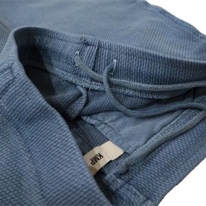 伝統的な幾何学模様の美しい一重刺し子生地を使用したピュアスウェットパンツのインディゴタイプ。
