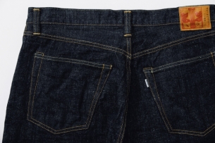 このモデルの大きな魅力は、やはり生地。15.5ozのスラブネップデニムを使用し、ムラ感の強いロングスラブ糸とネップ糸による、表情豊かな生地感が特徴です。新品の状態でも凹凸感があり、穿き込むほどに縦にスッと落ちるタテ落ちが現れ、経年変化をしっかり楽しめます。